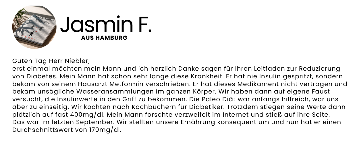 Nein, das kann ich nicht behaupten, denn das wäre schlichtweg gelogen. Zwar haben es viele Menschen mit diesem Ansatz geschafft, sich von Medikamenten und letztlich von Diabetes Typ 2 zu befreien, aber nicht jeder. Dennoch muss auch gesagt sein: Das hängt natürlich auch mit vielen individuellen Faktoren zusammen. Selbst wenn der Diabetes über die Jahre nicht schlechter wird, ist das schon ein kleiner Erfolg. Das vergessen viele, denn meist wird es mit jedem Jahr schlimmer. Je früher wir also anfangen, die wirklich förderlichen Dinge umzusetzen, desto besser.