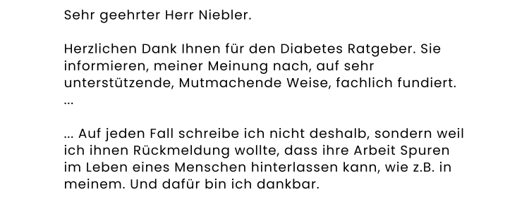 Dafür ist diese Website da, denn Selbstbewusstsein entsteht durch Klarheit. Diese werde ich Ihnen geben, wodurch sich die Angst vor der Erkrankung bereits erheblich verringert. Selbstvertrauen entsteht hingegen durch das Tun. Schritt für Schritt. Auch hierbei werde ich Ihnen den richtigen Weg zeigen. Denn nur so können Sie Ihr Schicksal wieder selbst in die Hand nehmen. Neben einer möglichst kompetenten schulmedizinischen Versorgung ist dieser ganzheitliche Ansatz (auch laut Wissenschaft) die optimale Lösung, um den Kampf gegen Diabetes Typ 2 zu gewinnen.
